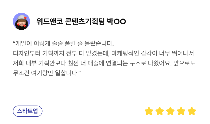 · 마케팅 출신 CEO와 전문 마케터 팀이 기획 단계부터 참여